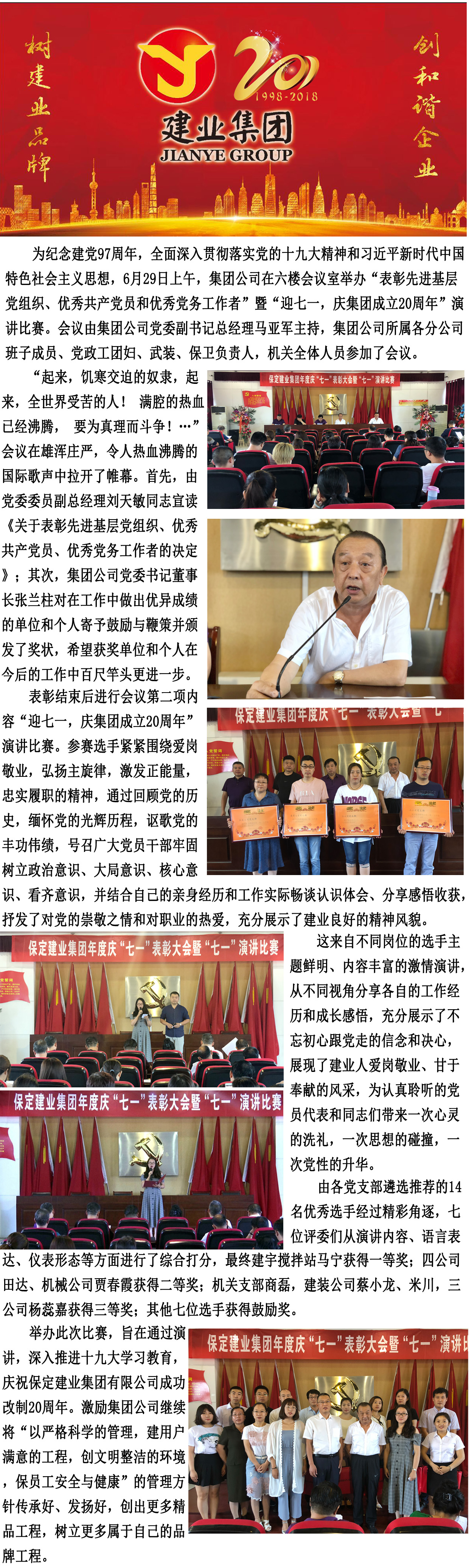 天空·(中国)手机网页版举办“七一”表彰大会暨庆“七一”演讲比赛